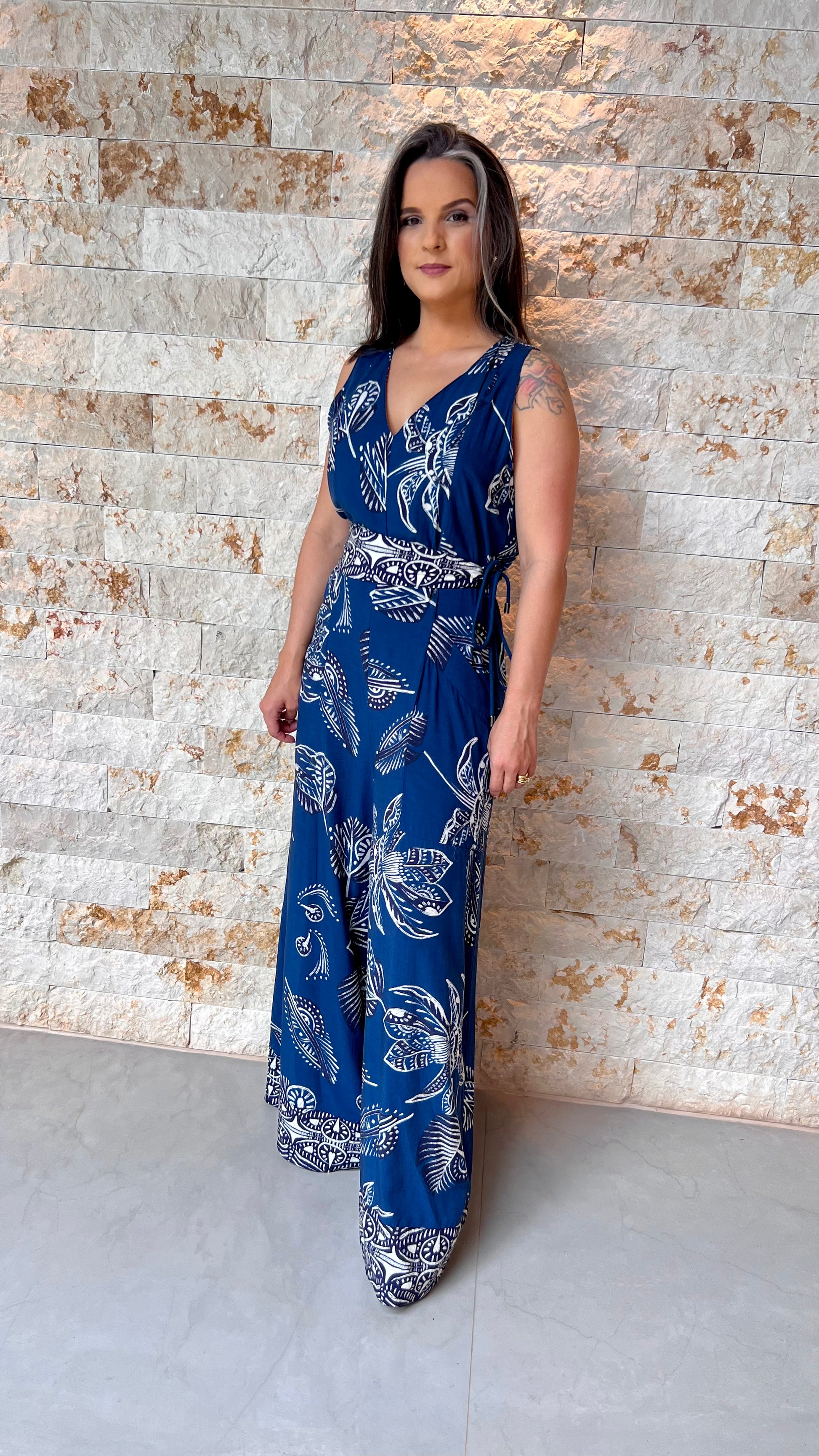 Macacão Pantalona Bolso ABS - Estampado 5451