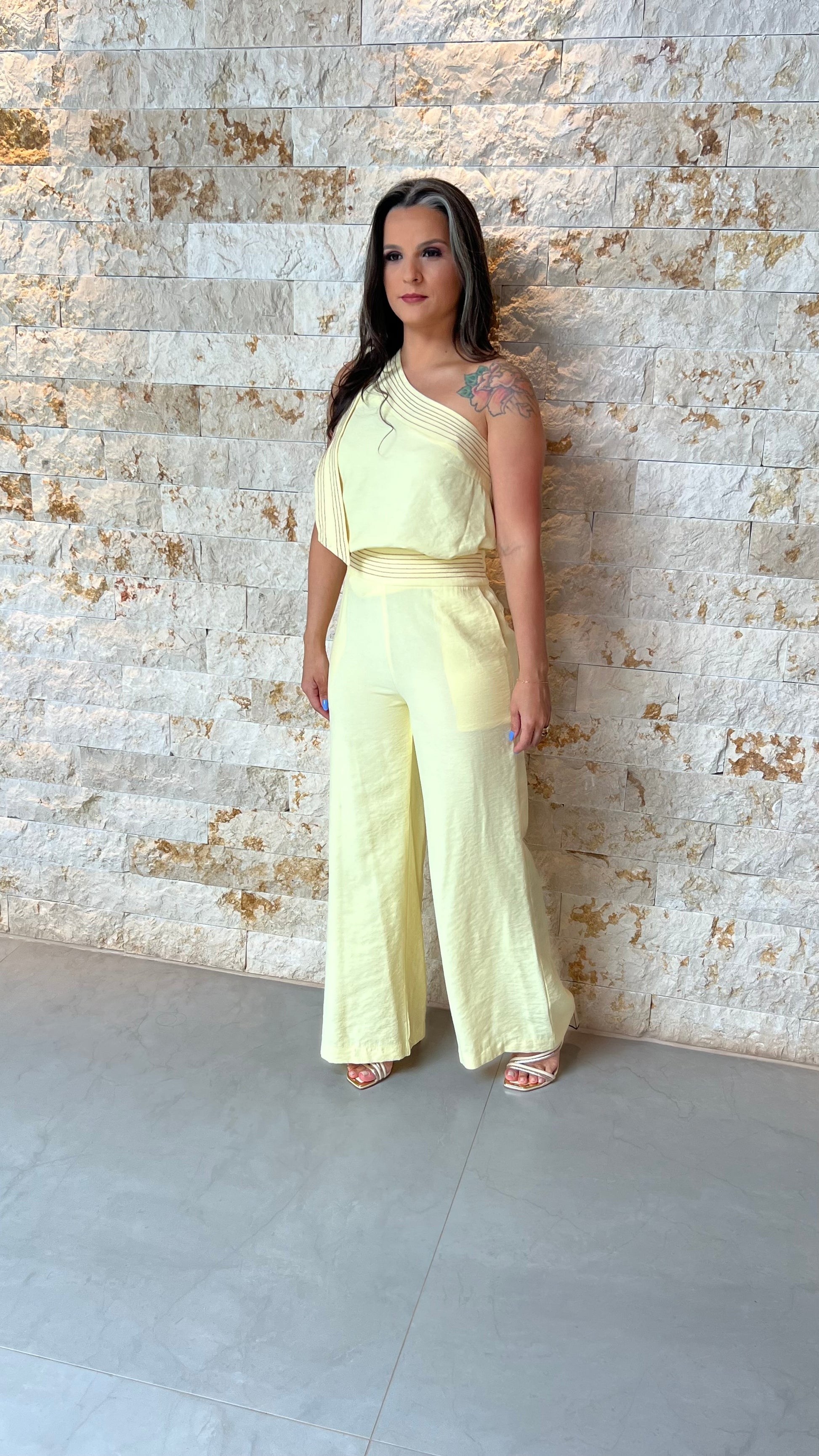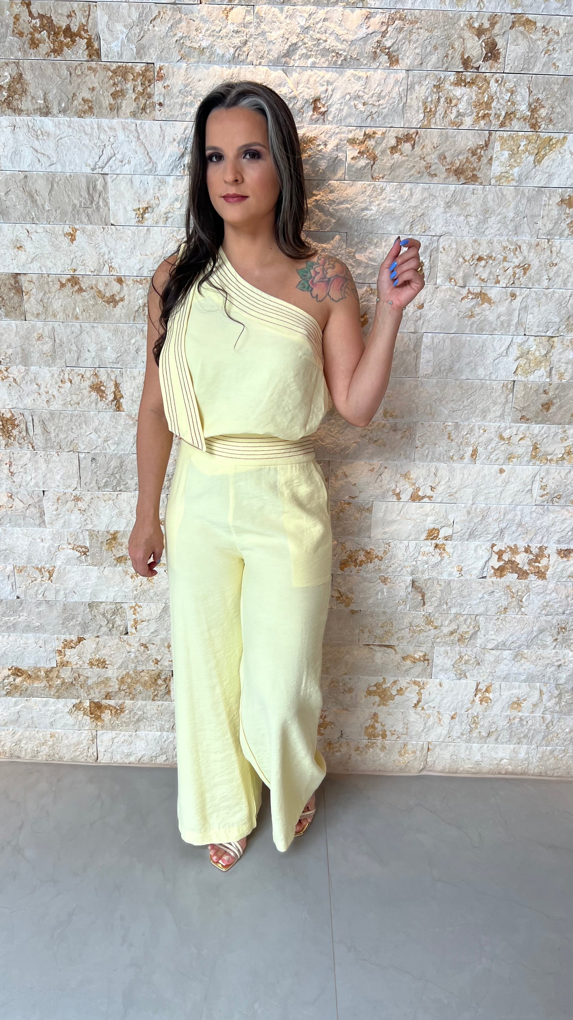 Conjunto Calça e Blusa Ombro Só JEN- Amarelo 5891