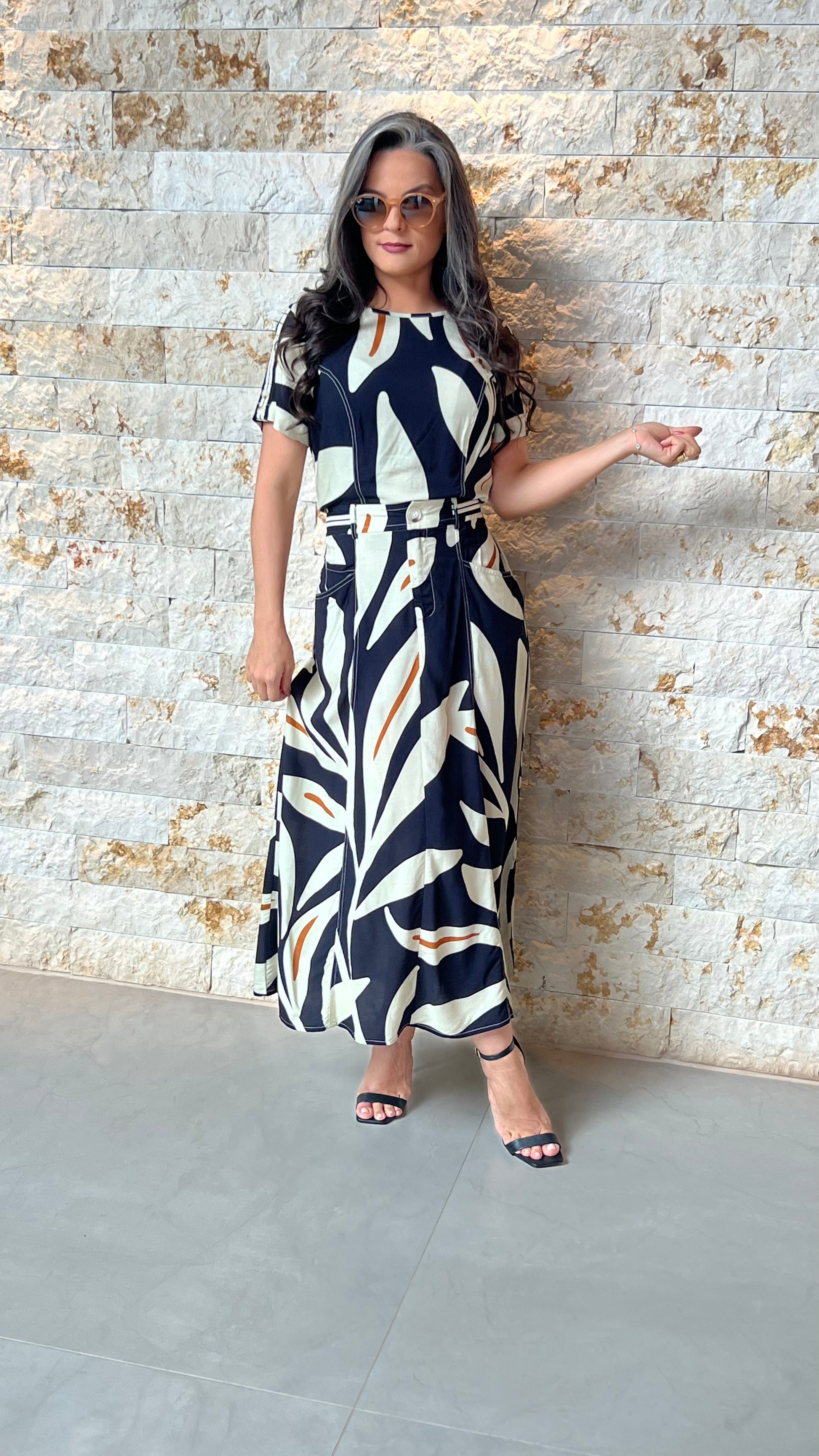 Conjunto Saia e Blusa Retilínea PIS- Estampado 5864