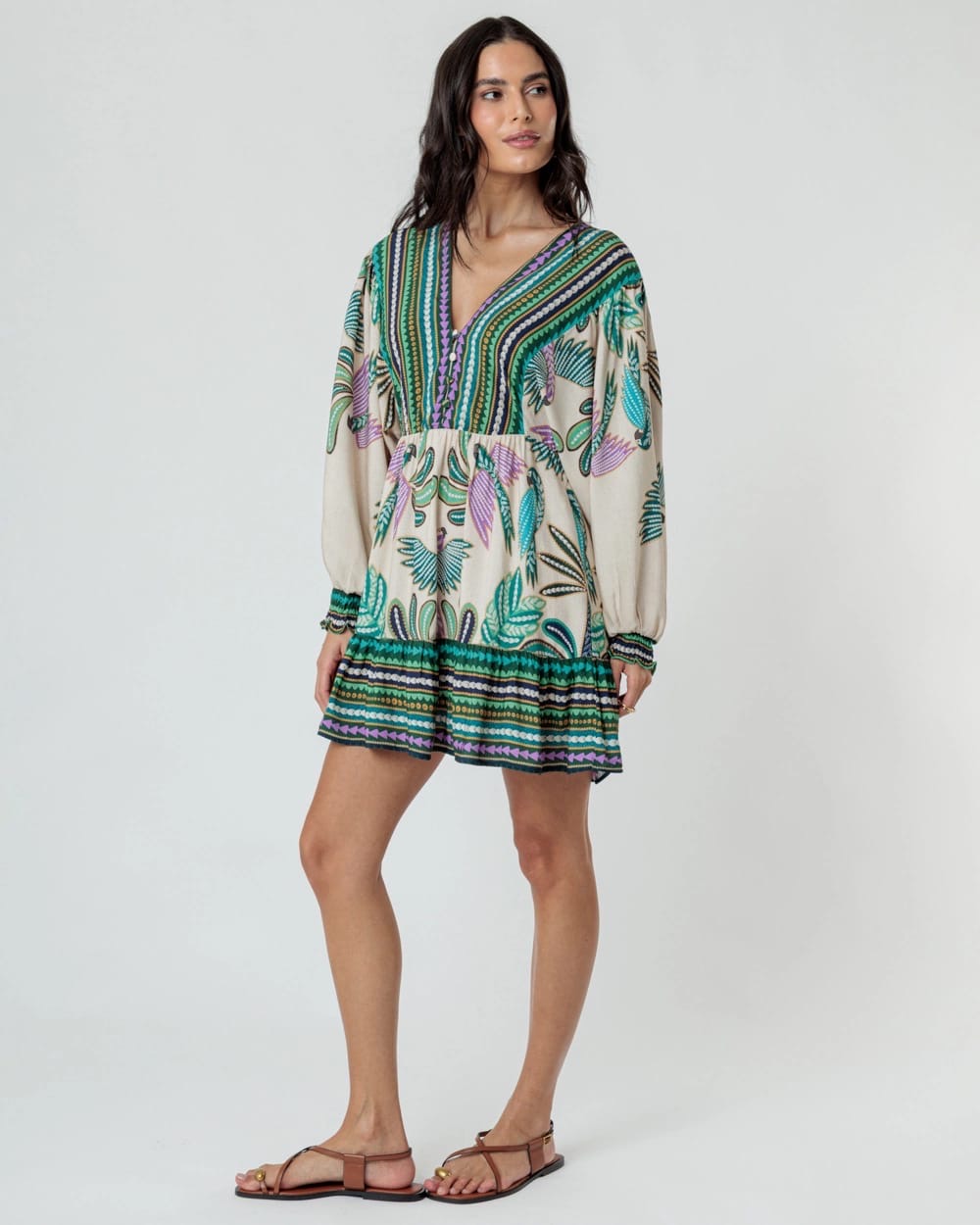 Vestido Curto Manga Longa Pássaros CHI- Estampado 5879