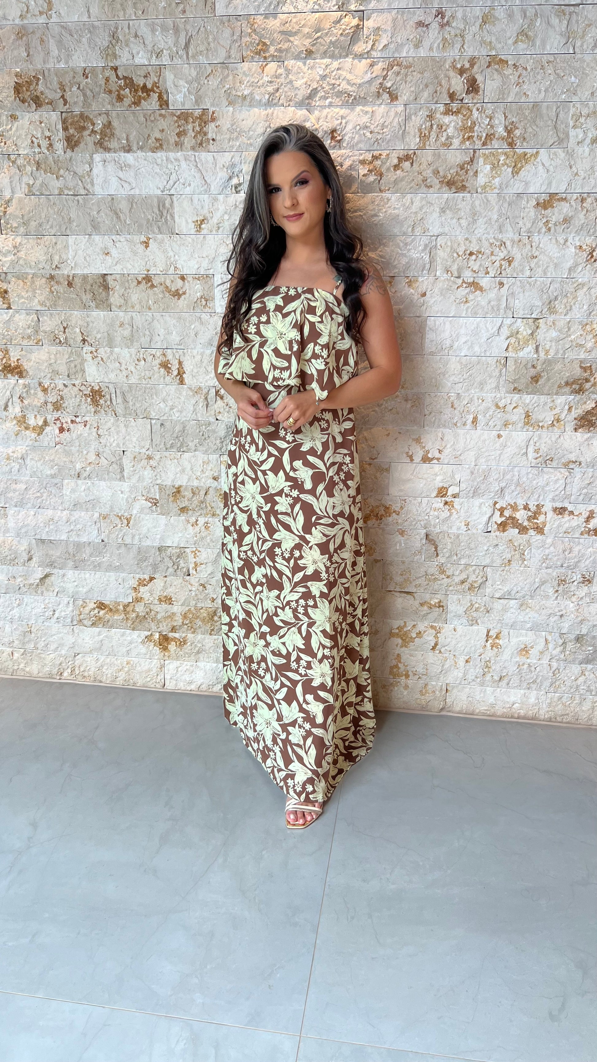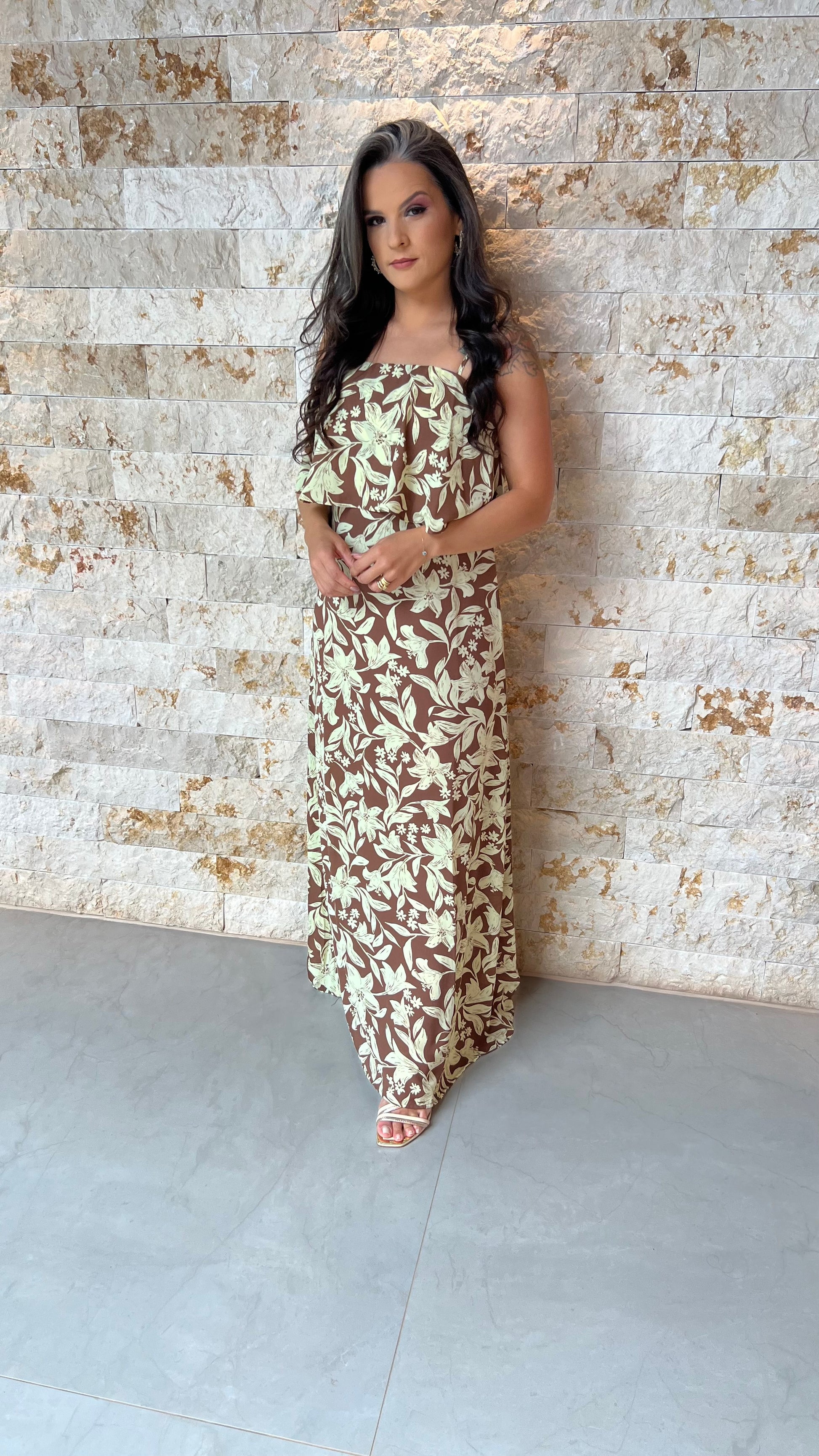 Vestido Longo Alcinha Babado Busto ALO- Marrom 5927