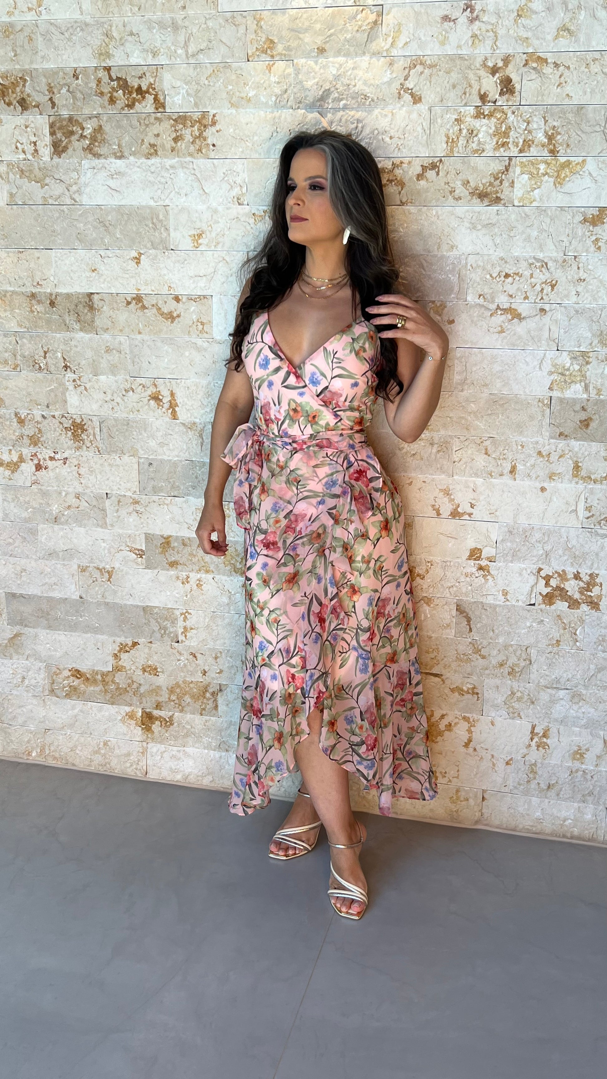 Entre no clima de romance e elegância com este vestido longo de estampa floral. Perfeito para celebrar a beleza da natureza, ele é uma escolha encantadora e sofisticada para qualquer evento especial.