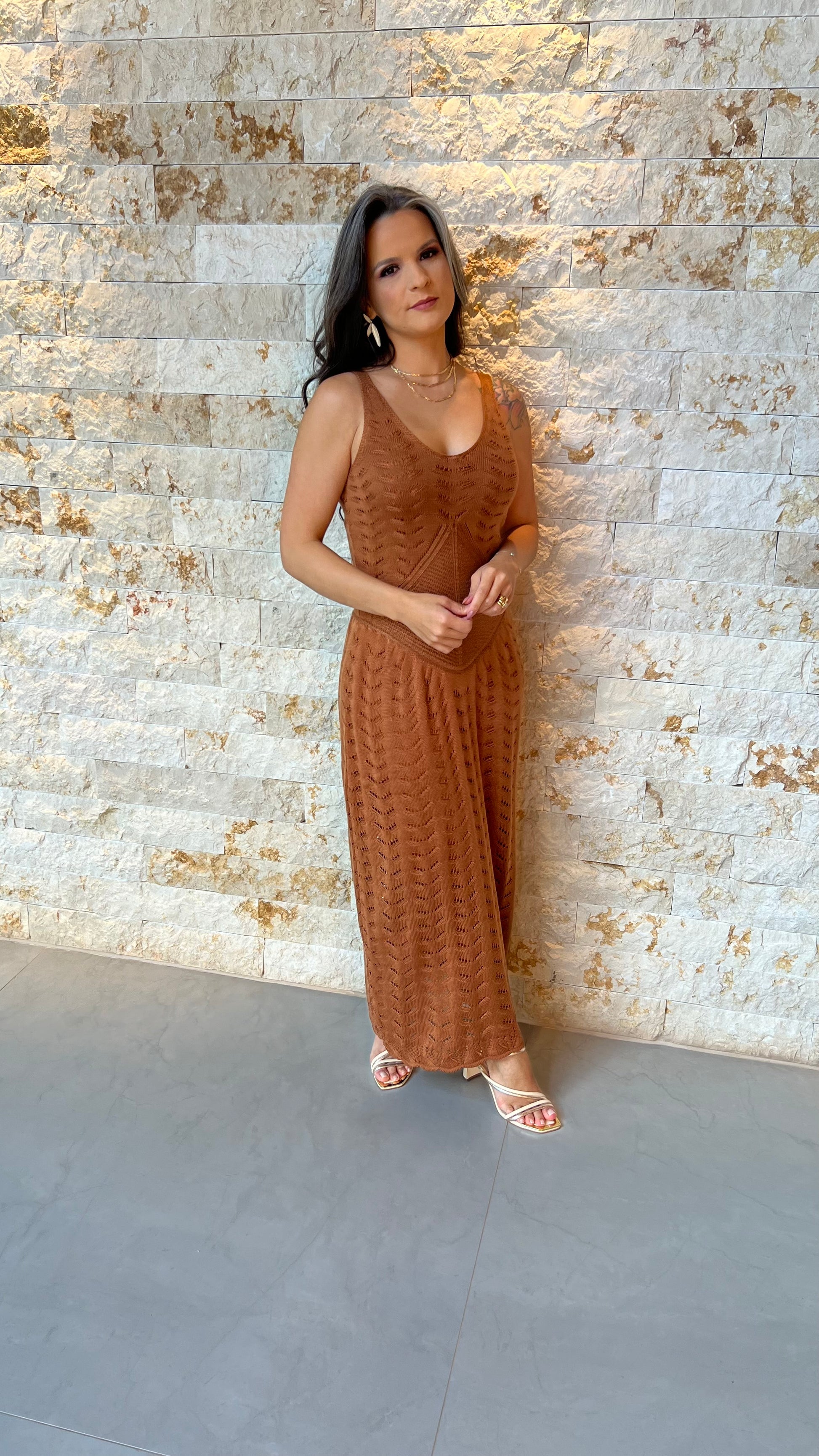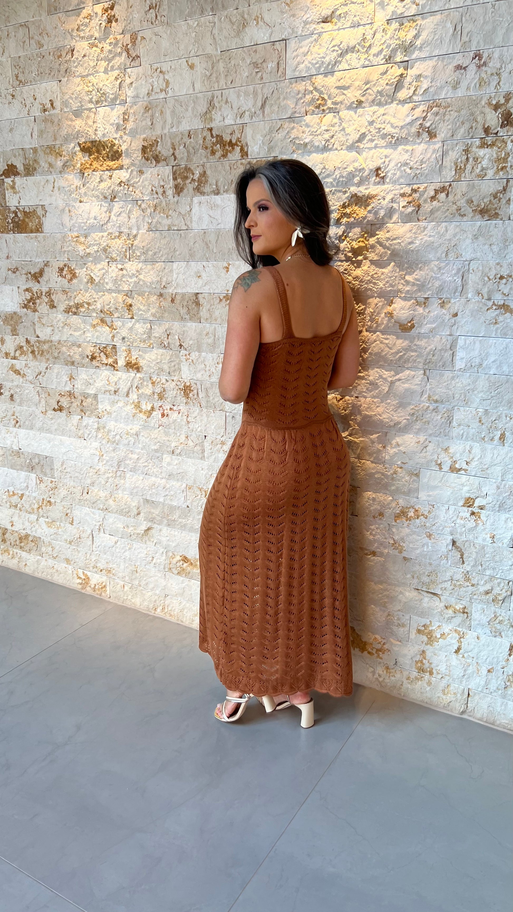 Vestido Midi Tricô Cintura Baixa POLI- Marrom 5912