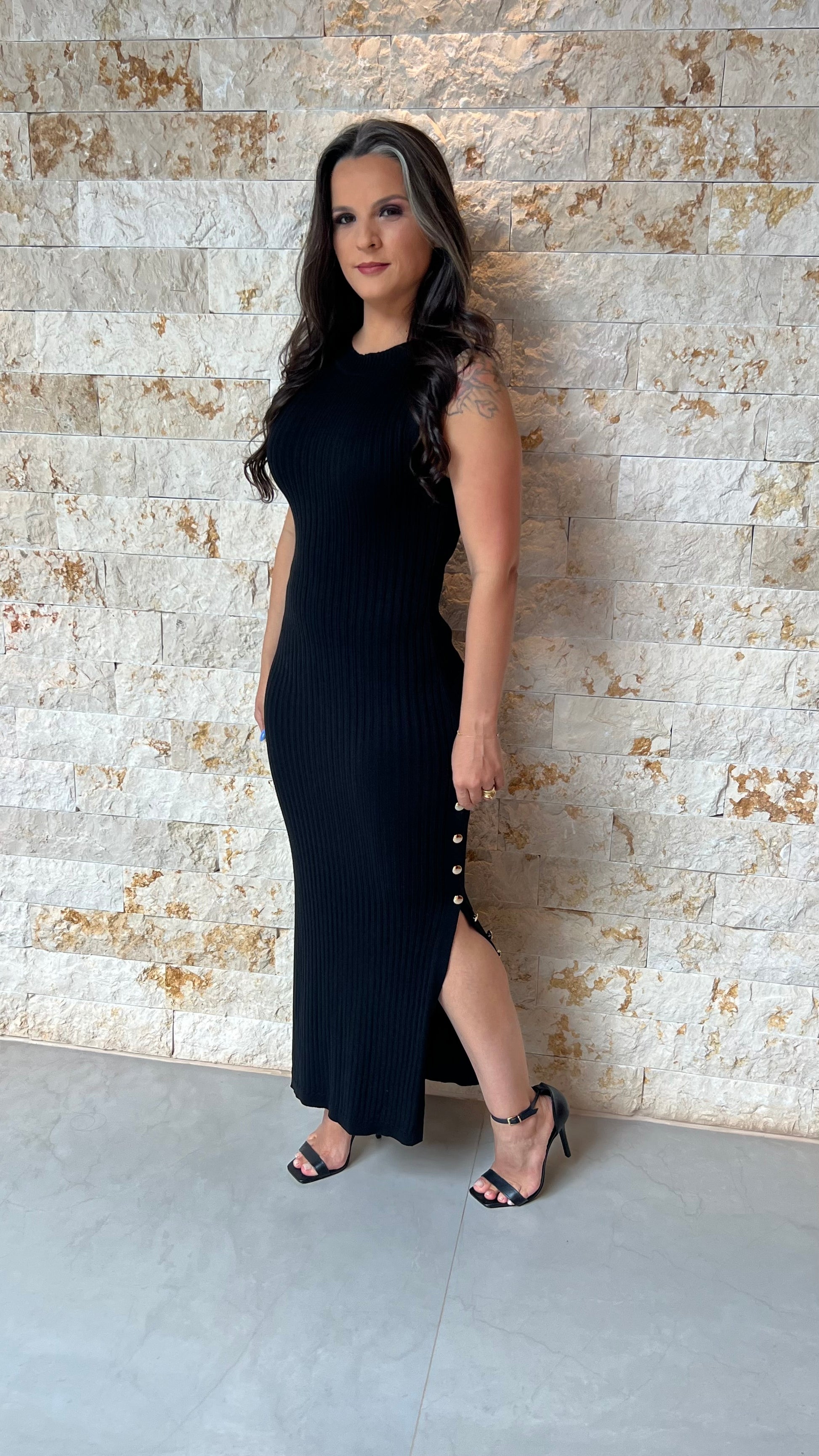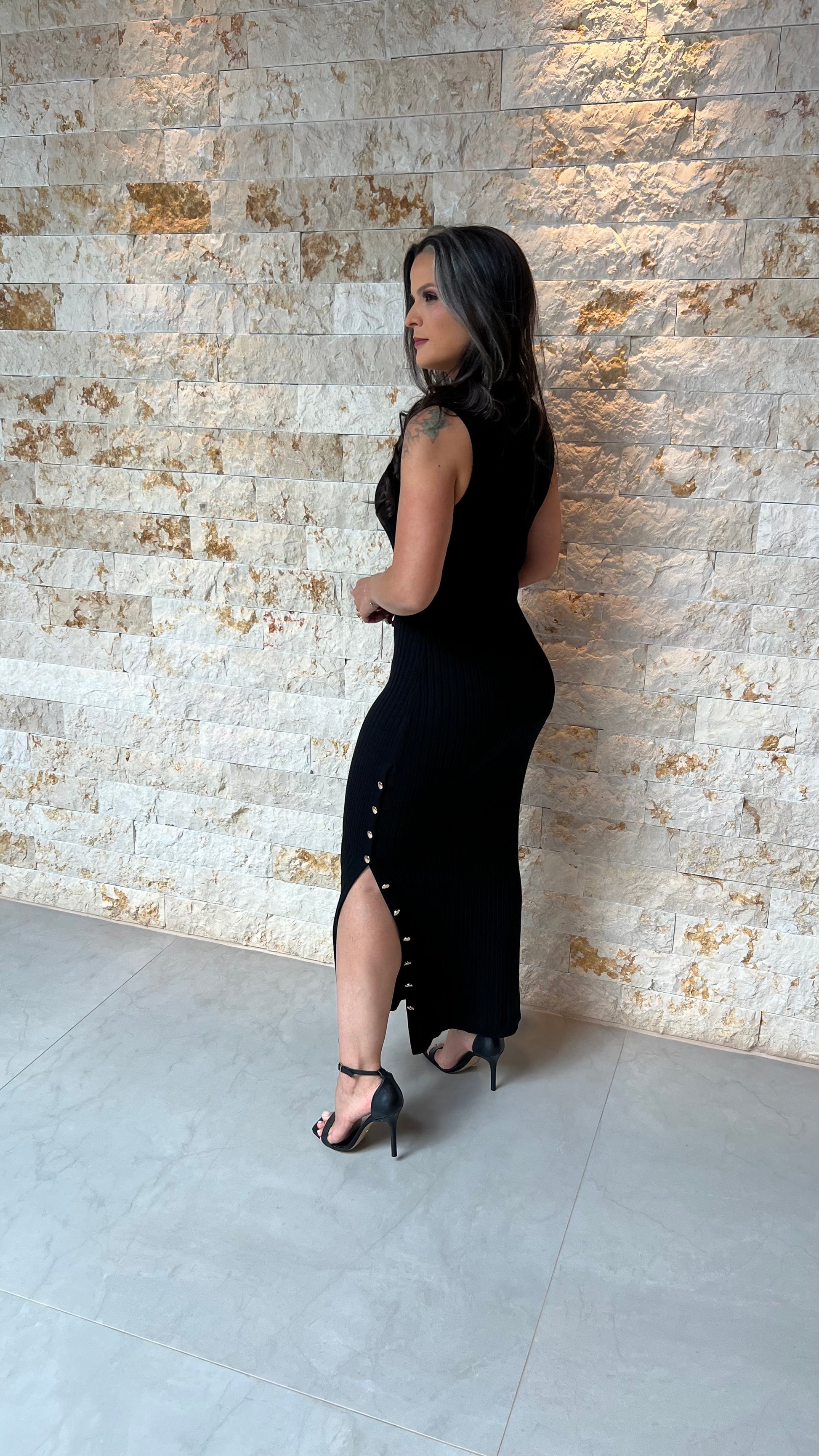 Vestido Midi Fenda Botões POLI- Preto 5895