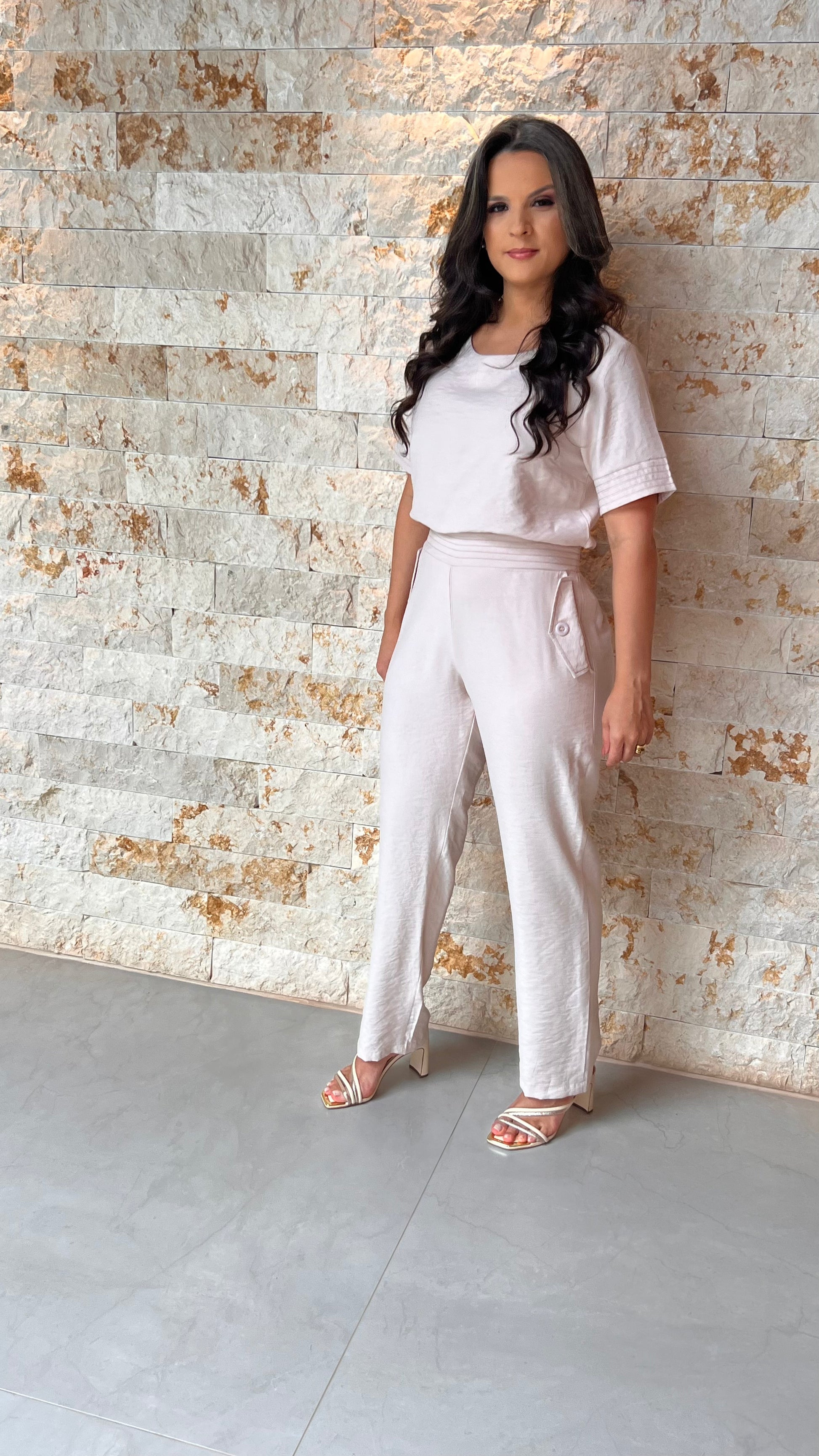 Este conjunto de duas peças é ideal para quem não abre mão do look coordenado, mas prioriza a leveza e a fluidez. Perfeito para o trabalho em ambientes informais, passeios ou para um almoço com amigas.